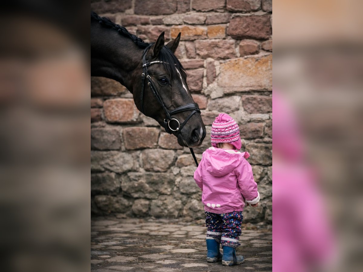 Sir Chic GS, im Stall „Sammy“ genannt, ist ein talentierter junger Wallach mit hervorragender Perspektive für den Dressursport. Gezogen auf dem Schafhof in Kronberg im Taunus, durfte er seine Jungpferdezeit artgerecht auf großzügigen Koppeln verbringen und entwickelte sich dort zu einem ausgeglichenen und unkomplizierten Pferd. Aktuell befindet sich Sammy in schonender, altersgerechter Ausbildung bei einer Bereiterin und zeigt sich dabei äußerst lernwillig, brav und kooperativ. Besonders hervorzuheben ist, dass er bereits in allen drei Grundgangarten frei in der Halle geritten wird und dabei sein großes Potenzial bestätigt. Seine Bewegungen sind taktsicher, schwungvoll und von natürlicher Balance geprägt. Auch charakterlich lässt er keine Wünsche offen: Sammy ist absolut nervenstark, menschenbezogen und sehr zuverlässig im Umgang. Er lässt sich problemlos satteln, putzen und verladen und ist sehr gut halfterführig. Selbst ein vierjähriges Mädchen kann ihn sicher über den Hof führen – ein eindrucksvoller Beweis für seine Verlässlichkeit und sein ruhiges Gemüt. Er hat zudem bereits erste kurze Ausflüge im Schritt rund um den Hof gemeistert und zeigt sich auch außerhalb der gewohnten Umgebung gelassen und souverän. Abstammungstechnisch lässt dieser junge Wallach keine Wünsche offen: Er stammt ab von Sir Donnerhall aus einer Totilas-Mutter und vereint damit Rittigkeit, Elastizität und Ausdruck mit modernster Dressurgenetik auf höchstem Niveau. Sir Chic GS ist ein Pferd für Reiter, die sich ein ehrliches, talentiertes Nachwuchspferd mit klarer Perspektive im Dressursport wünschen. Der Preis steigt mit weiterer Ausbildung