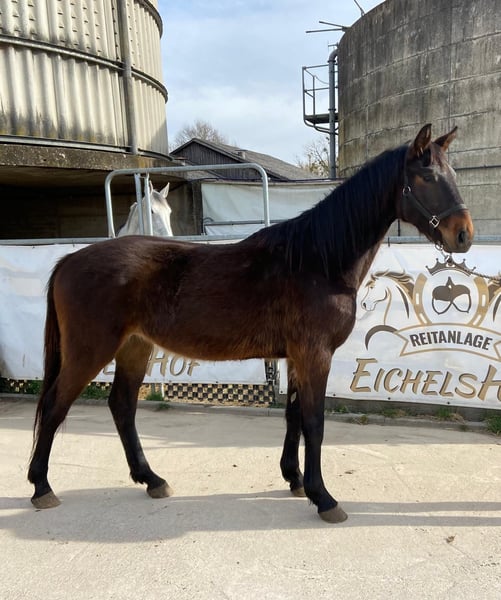 "Corni" comes from our own breeding and is raised in a herd in open stable conditions. In our eyes, he presents himself as a great all-rounder. He has three good basic gaits and also shows great talent in free jumping (the video shows him free jumping for the first time). His sire, Cornet de Semilly, has proven successes up to 155cm, and his pedigree, with Cornet Obolensky x Diamant de Semilly, speaks for itself. "Corni's" dam has been successfully presented by our children in show jumping from WB to M-level as well as in dressage up to A-level. She is characterized by her wonderful temperament. Additionally, she is very easy to ride and has never let our children down in the course.