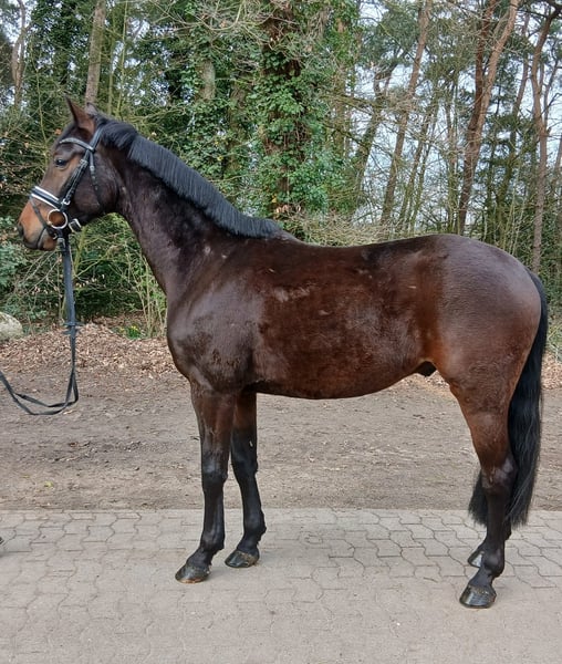 This affectionate gelding impresses not only with his comfortable height of approximately 16.1 hh but also with his balanced and honest character. Coming directly from the breeder, he has been raised in a solid and trusting environment and consistently shows himself to be well-behaved and straightforward in daily handling. He is an ideal partner for ambitious leisure riders as well as for those starting out in competitive riding. His calm demeanor provides a secure feeling in the saddle at all times, while his eagerness to learn is equally impressive. Whether in daily training, on the trail, or in the arena – this gelding always demonstrates motivation and reliability. Overview: - Gelding, approx. 16.1 hh - Directly from the breeder - Mare-like temperament with an excellent character - Absolutely well-behaved in handling and under saddle - Eager to learn and uncomplicated - Suitable for leisure riding and competitive sport - Reliable on trails and in the arena - Shoeing and loading friendly A truly dependable horse that will bring great joy to his new owner.
