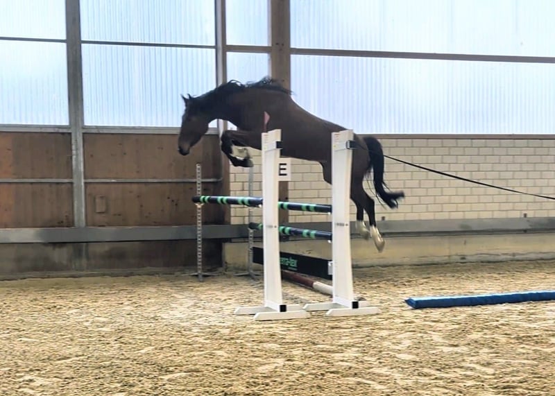 Schicker 3j. Wallach aus absolutem Leistungsstamm direkt vom Züchter - für kleines Geld abzugeben, aufgrund von klinisch irrelevantem Röntgenbefund! Dieser schicke, korrekt gebaute Youngster begeistert mit besten Qualitäten für den anspruchsvollen Springreiter! Er verfügt über eine äußerst qualitätsvolle Galoppade, die natürlich ausbalanciert, raumgreifend und aktiv gestaltet ist. Dazu kommt viel Übersicht und Geschick am Hindernis, sowie aktives Abfußen und ein überaus kraftvoller Sprung. Gepaart mit seiner guten Technik (hinten auffallend gut!) und seiner gesunden, sehr guten Vorsicht, wächst hier sicherlich hochtalentierter Sportler heran! Das Video zeigt sein zweites Mal Freispringen, das er aufgrund seiner überaus überzeugenden Einstellung bereits mit guter Manier absolviert! Auch das Pedigree lässt große Hoffnung auf eine sportlich erfolgreiche Zukunft aufkommen - ein außergewöhnlich sportlich orientierter Mutterstamm zeichnet diesen Youngster aus! Mit einer selbst M siegreichen Mutter die sich auf dem Weg in den schweren Sport befindet und selbst top vorsichtig ist, ist hier die beste Grundlage gelegt. Auch die Großmutter war selbst bereits unter einem Amateur-Mädchen bis L-platziert und legte ihre Zuchtstutenprüfung mit einer 9,5 im Springen ab. Gepaart wurde diese Mutterlinie mit Ausnahme-Hengst Durkhan Hero Z. Dieser außergewöhnliche Hengst hat sich unter dem Sattel von Christian Ahlmann als einer der besten jungen Hengste der Welt erwiesen. Als Siebenjähriger wurde er Vize-Weltmeister und mit nur neun Jahren gab er beim CSI 5* LGCT Grand Prix in London ein beeindruckendes Debüt auf 1,60 m-Niveau. Nicht lange danach erreichte er bei den 5* 1,60m Grand Prix‘ von Monterrey, Mexiko, zwei beeindruckende vierte Plätze in Folge.