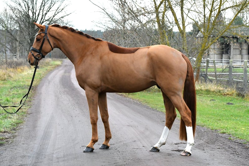Ten prawie 4-letni syn Belantis II dorastał u swojego hodowcy. Na początku lata 2025 został delikatnie rozpoczęty do jazdy i od tego czasu pewnie jeździ w wszystkich trzech podstawowych chodach. W terenie już pokazał, jak łagodny jest w charakterze. Bardzo posłuszny, łagodny charakter, a jednocześnie z odpowiednią dawką energii i wrażliwości, które są potrzebne dobremu koniowi ujeżdżeniowemu. Świetna praca w piaście, pełna rytmu i dynamiki, a także chody stęp i galop są na wysokim poziomie. W kontaktach z ludźmi to prawdziwy skarb i bardzo łatwy w obsłudze! Badanie techniczne z października 2025, obejmujące również badanie stanu grzbietu i szyi, jest dostępne i może być obejrzane wcześniej. To wspaniały młody koń, którego dalsza edukacja będzie miała sens! Ze względu na rodziców o ukierunkowaniu na skoki, może być również odpowiedni do wszechstronnej jazdy. Ze względu na duże zaangażowanie w opis, prosimy o kontakt wyłącznie telefoniczny – jesteśmy cały dzień w stajni 😀