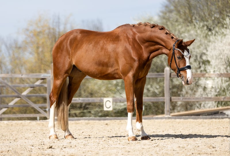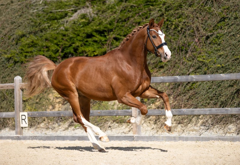 Potro de doma joven de 2022 Este impresionante y prometedor potro de doma de 2022 destaca por su apariencia (4 x blanco), su carácter y su movimiento impresionante. Dexter fue iniciado con suavidad en la pista y actualmente está siendo entrenado acorde a su edad por un aficionado. Es sensible en la mano y convence al jinete con una perfecta conexión, siempre motivado y con ganas de aprender. No presenta ninguna mala costumbre como cabecear o hacer el galope en el lugar. En 2025, Dexter aprobó con éxito su primera prueba de caballos de doma y es muy adecuado para la disciplina de doma clásica. Su hermana materna, Bella Ducati (de la misma yegua madre), se clasificó en 2025 para el Campeonato Federal en Warendorf, con una nota de 8,5 en la categoría de caballos de doma de 6 años. Es muy sociable con las personas, y es tranquilo en el herrado y en el transporte. Ideal para jinetes que buscan un caballo talentoso, sin malas costumbres, que destaque tanto en entrenamiento como en competición. Este potro de 4 años es tan agradable y fácil de montar que incluso algunos de 6 años no pueden igualar. Dexter realmente es fácil de montar para aficionados. Información importante: • Se disponen de buenas radiografías, incluyendo la columna vertebral. Es posible realizar una prueba de monta en cualquier momento, hay una pista cubierta disponible. Para más información o si está interesado, no dude en contactarme: Teléfono: 08531 3102826 o 0171 6087030
