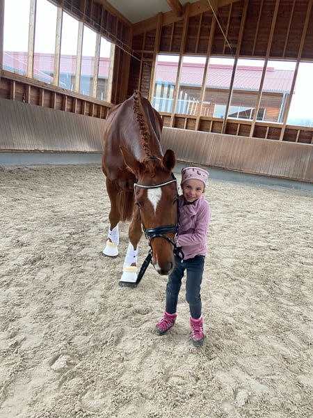 Walentino ist ein viel einsatzbereiter junger Wallach. Derzeit ist er in Ausbildung und macht sich sehr gut. Im Umgang sehr brav, mutig und jederzeit händelbar, macht es Spaß ihn zu reiten. Er ist absolut lieb, auch zu Kindern. Wir waren auch schon ein paar mal im Gelände mit ihm. Es macht große Freude ihn zu reiten. Er benötigt noch weitere Ausbildung, ist aber schon sehr weit für seine 4 Jahre. Auch beim Freispringturnier war er bereits und hat sich super benommen und alles mitgemacht. Bis Mitte Juli stand er beim Bayr. Pferdezuchtverband zur weiteren Ausbildung von Hr. Meschke. TÜV ist vorhanden und unauffällig. Er ist verladefähig, Offenstallhaltung sowie Box kennt er auch und hat keinerlei "Macken". Wir haben ihn mit viel Liebe und Geduld aufgezogen und geben ihn nur in gute Hände aber mit absolut reinem Gewissen. Züchter TüV sind vorhanden und ohne Befund. Stockmaß 1,71 m. Seine Mama Nobel Champ ist 1,74 m und springbetont. Weitere Videos können gerne zugeschickt werden. Sein Vater Wicked Game Woodlander ist ein gekörter Hengst, der aktuell in Dressurprüfungen der Klasse S* und M* überzeugt. Walentinos Vater ist ein geschmackvoll aufgemachter Hengst mit erstklassigen Grundgangarten, hervorragenden Rittigkeitswerten und sehr guten Interieurwerten, welche er an seinen Sohn weitergegeben hat. Wicked Game Woodlander war herausragender Sieger seines 14-tägigen Veranlagungstests und der Sportprüfung mit Noten im Trab 8,5, Galopp 9,0, Schritt 9,5 und für die Rittigkeit 9,0. Großvater ist der bekannte Wild Child. Walentinos Mutter Nobel Champ hat Springprüfungen in den Klassen A** und L absolviert. Nobel Champs Vater Now or Never hat zahlreiche Springprüfungen erfolgreich gemeistert, und seine Nachkommenzuchtwert beim Springen (145) hat noch im hohen Alter von 24 Jahren zu den Top-5% gehörte. Ihr Großvater ist der bekannte Voltoire, welcher zahlreiche Springturniere absolvierte, dazu zählt auch sein Sieg im Großen Preis von Berlin. Walentino kann gerne Probegeritten werden, für einen Unkostenbeitrag, welcher bei Kauf erstattet wird.