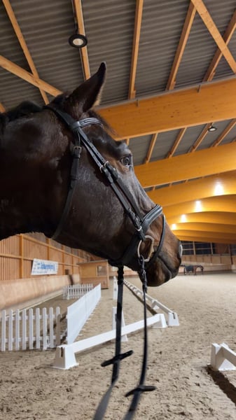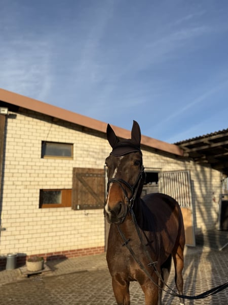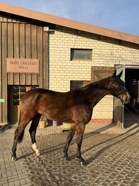 Zu verkaufen steht ein schicker, kompakter, selbstgezogener, 4-jähriger, 1,80m großer Wallach. „Farciro MG“ ist abstammend von Casiro I aus einer Naldo Mutter. Er ist mit 3 sehr guten Grundgangarten ausgestattet, zeigt sich im Umgang stets unkompliziert und beim Reiten sehr rittig und hat keine Unarten. Farciro konnte sich bereits in einer Reitpferdeprüfung präsentieren, war dort stets brav und bestätigt damit seine Qualität auch unter Turnierbedingungen. Erste kleine Sprünge unter dem Reiter hat er bereits souverän absolviert und zeigt dabei Übersicht und Vermögen. Farciro MG ist ein vielseitiger Nachwuchssportler mit vielseitiger Perspektive. Er eignet sich aufgrund seiner Rittigkeit auch für ambitionierte Amateure mit bereits Reiterfahrungen. Bei ernsthaften Interesse freuen wir uns auf Ihre Kontaktaufnahme.