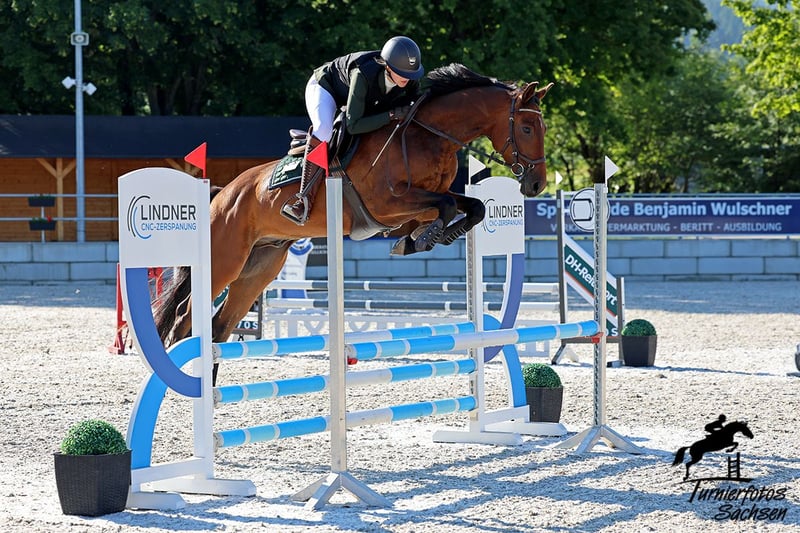 Quinto ist ein schicker, sympathischer Wallach mit viel Potenzial und einem ehrlichen Wesen. Er wird seit Dezember 2024 regelmäßig unter dem Sattel gearbeitet und überzeugt mit seiner konstant positiven Entwicklung – sowohl körperlich als auch in der Arbeit. Er präsentiert sich motiviert, gelassen und lernwillig, kennt Platzarbeit, Gelände, Freispringen, kleine Sprünge unter dem Reiter sowie Bodenarbeit. Dabei bleibt er auch in neuen oder ungewohnten Situationen ruhig und konzentriert. Am 20. Juni 2025 lief er seine erste Springpferdeprüfung Kl. A* mit einer Grundnote von 7,4 – trotz einer Stange war es eine sehr gelungene Runde, in der er sich gelassen und fokussiert zeigte. Wichtig zu wissen: Quinto koppt, was sich in Offenstallhaltung deutlich verbessert. Er zeigt dieses Verhalten nicht in Stresssituationen wie z. B. auf Turnieren und hatte bisher keinerlei gesundheitliche Einschränkungen oder Probleme dadurch. Er eignet sich ideal für Reiter:innen, die einen jungen Partner mit Perspektive suchen – sei es für den gehobenen Freizeitbereich, das Springen oder die Vielseitigkeit. ⸻ Besonderheiten: • Klar im Kopf, brav im Umgang • Turniererfahrung • Springt sicher über Gymnastikreihen • Offenstall-geeignet / kennt Boxenhaltung mit Auslauf • Regemäßig entwurmt und geimpft • AKU kann bei Bedarf durchgeführt werden ⸻ Kontakt: Quinto kann nach Absprache gerne besichtigt und probegeritten werden. Wir freuen uns über eine Nachricht mit kurzer Vorstellung!
