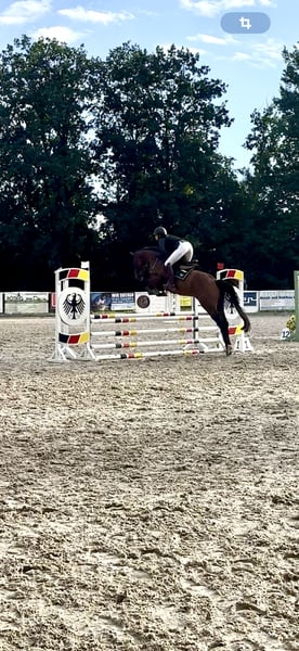 Quinto is a handsome, friendly gelding with great potential and an honest character. He has been regularly ridden since December 2024 and impresses with his consistent positive development – both physically and in his training. He presents himself as motivated, calm, and eager to learn. He is familiar with groundwork, hacking, free jumping, small jumps under saddle, and ground work. Even in new or unfamiliar situations, he remains calm and focused. On June 20, 2025, he competed in his first show jumping class (Class A*) with a base score of 7.4 – despite knocking a rail, it was a very successful round where he appeared relaxed and attentive. Important to know: Quinto’s cribbing behavior significantly improves when kept in a pasture environment. He does not display this behavior in stressful situations such as competitions and has had no health issues or problems related to it so far. He is ideally suited for riders looking for a young partner with potential – whether for advanced leisure riding, show jumping, or eventing. ⸻ Special features: • Clear-minded and well-behaved • Competition experience • Confident over gymnastic lines • Suitable for turnout / familiar with box stalls with turnout • Regularly dewormed and vaccinated • Health check (AKU) available upon request ⸻ Contact: Quinto can be viewed and tried in hand by appointment. We look forward to receiving a message with a brief introduction!