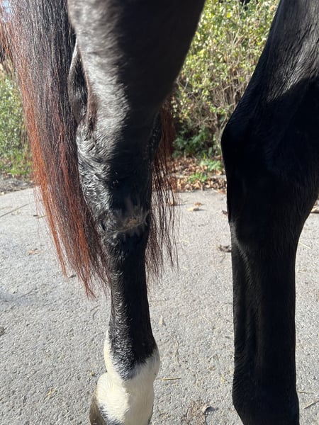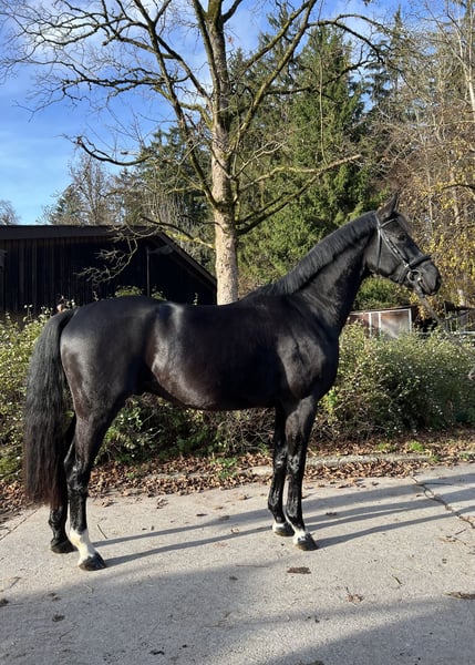 This beautiful gelding comes from our own breeding program. He was born and raised here on our farm. Unfortunately, he sustained a pasture injury in June 2023, which required him to be in his box for a period of time. At that time, he was still a stallion, but despite the box rest, he remained very well-behaved, easy to handle, and always mentally alert. He was allowed to return to the pasture for another year and was lightly backed this summer. From the beginning, he proved to be very eager to learn and well-behaved. He is also familiar with free jumping, which he enjoys greatly and demonstrates good ability. Current X-rays and a veterinary assessment are available. The injury has healed very well and does not affect him. However, due to his remaining scar and the resulting X-ray findings, he is being sold at a significantly reduced price.
