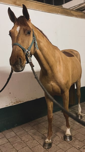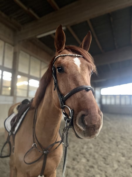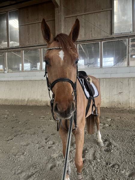 Dio Mio ist ein schöner, 5-jähriger Wallach abstammend von Diro aus einer Calido I Mutter. Nach dem Einreiten letztes Jahr durfte er den Sommer nochmal in der Herde auf der Weide verbringen wo er nochmal ordentlich gewachsen ist. Er springt aktuell die ersten kleinen Parcours und war letzte Woche das erste Mal auswärts zum springen unter Turnierbedingungen, was er brav gemeistert hat. Er hat von seinem Vater genügend Go geerbt, ist dabei aber stets brav und gut handelbar. Er besticht unter dem Reiter vor allem mit drei sehr guten Grundgangarten und seinem sportlichen Erscheinungsbild. Im Umgang ist er stets freundlich und unkompliziert. Aufgrund seines Ausbildungsstands ist er aktuell noch nicht für Anfänger geeignet. Wir sehen ihn bei einem ambitionierten Amateur aber auch bei einem Profi. Wenn Sie Interesse an Dio haben, freuen wir uns über Ihre Anfrage.