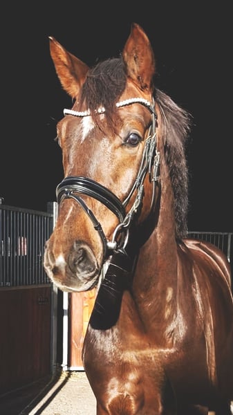 Traumpferd gesucht? Hier kommt Best Buddy. Der Name ist hier tatsächlich Programm. In toller Dunkelfuchsfarbe und ganz schicker Optik kommt hier, mit großem Bewegungsablauf, ein echter Kumpel daher. Mit einer Größe von 1.68m ist er super als Umsteigerpferd geeignet, jedoch auch nicht zu klein für den etwas größeren Reiter. „Benni“ stammt ab von Ben Benicio aus einer Damon Hill Mutter und ist ein echtes Charakterpferd. Immer ehrlich und zuverlässig. Ob im Umgang, wo meine 10 jährige Tochter ihn führen und putzen kann, ob alleine mit ihm aufs Turnier fahren oder auch unter dem Sattel. Er möchte nichts falsch machen und ist stets auf der Seite des Reiters. Dies konnte er im letzten Jahr auch schon auf einigen Turnieren unter Beweis stellen und konnte sich in Serie in Reitpferdeprüfungen hoch platzieren und gewinnen. Hier gab es durchweg Noten in den GGA von 8,0-8,5. Dies sicherte ihm auch die Qualifizierung zum Bundeschampionat und den Titel des Vize Verbandschampions Brandenburg-Anhalts. Aus seiner Familie stammen ebenfalls die Grand Prix erfolgreichen Pferde DSP Dauphin, sowie Diamond Head und andere S*** erfolgreiche Pferde. Hier wächst ein ganz toller Sportpartner für das große Viereck und gleichzeitig ein ganz toller Kumpel zum kuscheln, Spaß haben und Quatsch machen heran. Hier noch ein weiteres Video: https://youtu.be/4WbfD32WLBg?si=mYfsCAIG8e_f0Kxi
