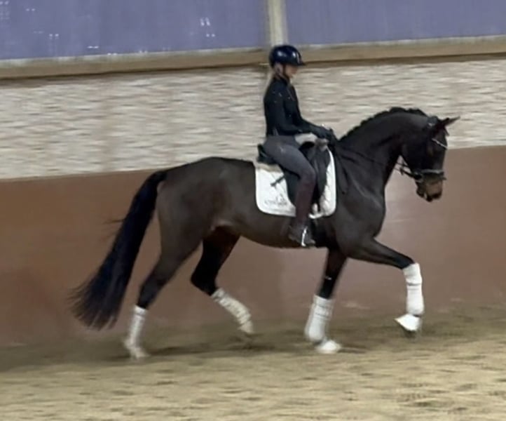 Dear Interested Parties, To schedule a test ride, please send me a WhatsApp message. For further questions, I am available during the day via WhatsApp, and you can reach me best by phone between 4 PM and 7 PM. I look forward to hearing from you. www.angelina-devittorio.de ⭐️Valentino⭐️ Age: 4 years (2021) Height: approximately 16.1 hh Pedigree: Va Bene x Lord Sinclair I Training level: Young riding horse / Reitpferde / Dressage Pferd A level Health: Good X-ray results available For sale is a beautiful four-year-old gelding by Va Bene, who impresses with above-average movement quality in all three basic gaits. A wonderful young talent with a great character and potential for the big arena! His canter features an excellent, uphill mechanics, while his trot is elastic, very rhythmical, and lively. In walk, he is clear in rhythm and exhibits good ground coverage. He consistently shows cooperation, bravery, and a clear mind. Despite his suitability for amateurs, his current training level still requires some experience with young horses from the rider. This is a horse of exceptional training quality, with all the prerequisites for a successful career in the big ring. ⚜️ Phone: 0171-3438949 ⚜️ Email: a.devittorio@web.de ⚜️ https://www.ehorses.de/angelinadevittorio Facebook and Instagram: Angelina De Vittorio