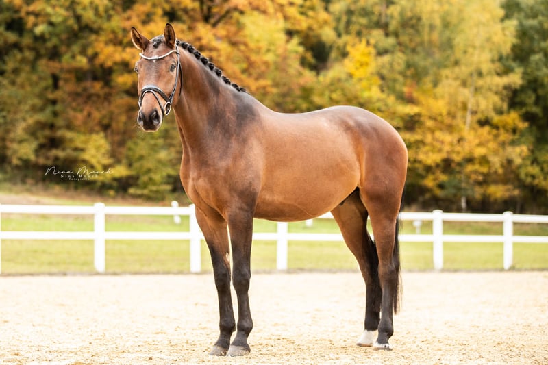 This stylish 4-year-old son of Dynamic Dream has been with us since foalhood and has been under saddle for a good six months now. He impresses everyone daily with his confident and level-headed nature! Always motivated in work and equipped with three very good basic gaits. He simply always wants to do everything right. A horse for every rider—just mount up and enjoy! He is also a real sweetheart in handling, whether it's the farrier, loading, or working with children; he is always curious and absolutely well-behaved. He also enjoys jumping exercises, free jumping, and hacking out in the field. He is familiar with herd and box stabling and gets along very well with other horses. Certainly a horse with a bright sporting future and an absolutely wonderful character. For more details, please contact us by phone or WhatsApp at +49 160 1662003.