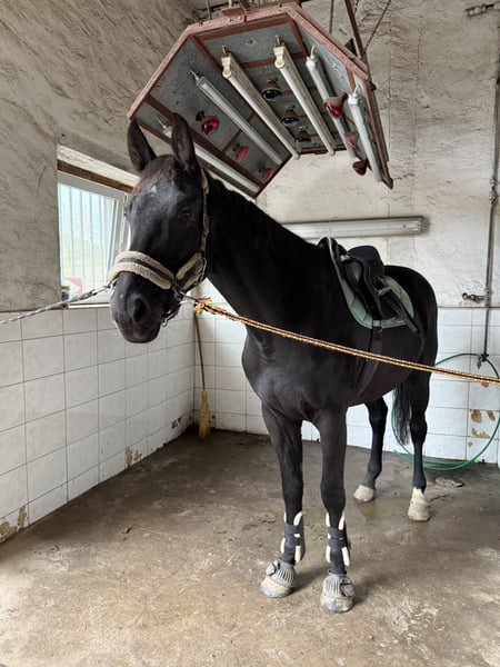 Schweren Herzens muss ich mich von meinem 5 jährigen Wallach trennen. Quantador stammt ab von Quiz x Baloubet du rouet und ist somit wie gemacht für den Springsport. Dahingehend wurde er altersgemäß gefördert. Durch seinen ruhigen, ausgeglichenen Charakter kommt er auch als Freizeitpferd infrage. Er hat viel Freude an der Arbeit mit dem Menschen und ist immer bereit dazuzulernen. Er geht alleine als auch in der Gruppe ins Gelände, kennt es longiert zu werden und wird unter dem Reiter weiter gefördert. Seinem Alter entsprechend muss weiter an der Geduld beim Stillstehen gearbeitet werden. Er kennt Hänger fahren, den Schmied und der Tierarzt ist sein bester Freund :) Er ist gesund, es wurde aber noch kein TÜV gemacht. Er wird mit Zubehör verkauft.