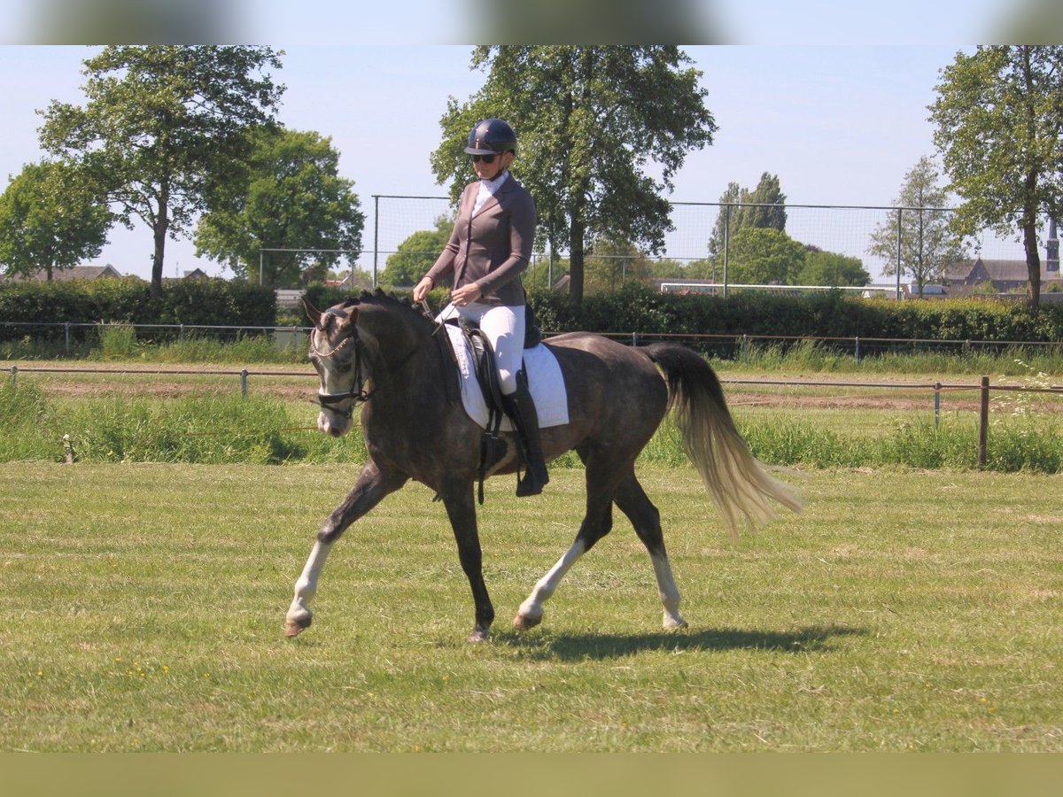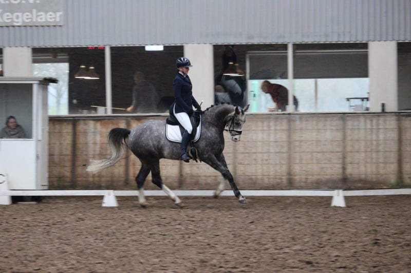 Für diejenigen, die etwas Besonderes suchen Ein äußerst angenehmer, fein bewegender Wallach, 1,63 / 1,64 m groß, kompakt gebaut – das ideale Damenpferd / Übergangspferd vom Pony zum Pferd, um in der Dressur zu glänzen. Sein Vater ist der deutsche Zuchtstamm des Shagya-Hengstes Basalt R, seine Mutter ist vollblütig deutsches Warmblut mit Abstammung von Quarterback (v. Quarterman Brand) x Wolkentanz I. Er ist sehr angenehm zu reiten, hat viel Bewegungsfreude, viel Schwung und Ausdruck. Momentan hat er seine erste L-Dressur absolviert, wir arbeiten an der Verfeinerung und üben gerade einige M-Übungen. Außerdem zeigt er eine gute Springanlage und springt eine kleine Parcoursrunde von ca. 70 cm. Unser Fokus liegt momentan hauptsächlich auf Dressur, daher beschäftigen wir uns weniger mit dem Springen. Ausritte in der Natur liebt er ebenfalls und hat keine Angst vor dem Verkehr, der hier vorbeifährt. Charakterlich ist er ehrlich und freundlich, stets motiviert, etwas zu tun. Besichtigung in Wijk und Aalburg möglich. Alle (Re-)Prüfungen erlaubt.