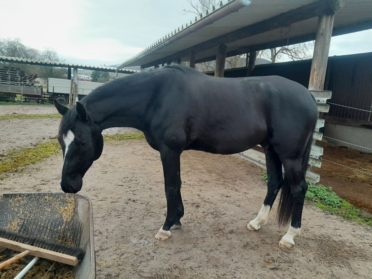 Wegen Aufgabe des Reitsports steht mein schicker Wallach zum Verkauf. Er ist ca 170 cm groß, schmiede- und verladefromm, sehr artig bei Impfungen, ist barhuf (war aber auch schon beschlagen), geht sowohl alleine als auch zu zweit ins Gelände. Er steht in einem Offenstall mit 24/7 Heu. Mein Bub wurde von mir ausgebildet, ist noch völlig unverbraucht, eher locker geritten und noch nicht angeschoben im Sinne von "Setzen". Die Bewegung geht bei ihm super schön durch den Körper. Aufgrund Zeitmangels war er noch nie auf einem Turnier, ist jedoch Turnierpferde eingetragen und kennt auch fremde Plätze. Aus bekanntem Grund wurde er in der letzten Zeit wenig geritten, kennt aber L-Lektionen wie Außengalopp, Kurzkehrt, ... etc. Müsste jedoch wieder aufgefrischt werden. Mein Bub ist leichtrittig, dennoch sollte man in der Lage sein ihn einzurahmen, weshalb er nicht für Anfänger und Kinder geeignet ist. Er kennt Trabstangen, und seit geraumer Zeit lasse ich ihn auch ab und an über ein Cavaletti an der Longe springen (da Freispringen bei uns leider nicht möglich). Dies macht er sichtlich gerne, zieht immer an. Unterm Reiter wurde er noch nicht gesprungen. Es liegen Röntgenbilder 3,5 jährig vor. Soweit alles in Ordnung bis auf ein Minifragment, welches von mehreren Tierärzten als "zu vernachlässigen" eingestuft wurde, da es niemals Probleme bereiten wird und kein Risikobefund darstellt. Die Trense gebe ich mit dazu, und er wird von mir in sein neues Zuhause gebracht. Er wird nur innerhalb Deutschlands verkauft, und auch nur wenn es wirklich passt. Für das Probereiten sind 30 € zu entrichten, die bei etwaigem Kaufabschluß gut geschrieben werden. Der Preis ist nicht verhandelbar!