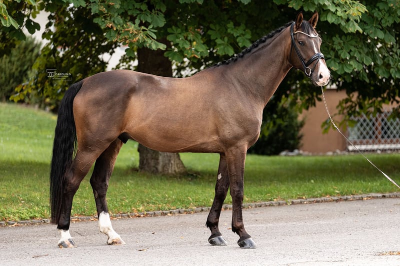 In vendita un bellissimo castrone DSP di 6 anni, figlio di Escolar x Royal Blend. Con il suo particolare manto e un'altezza di 173 cm attira tutti gli sguardi. Ha vinto gare di equitazione e DPA ed è stato altamente classificato in DPL, con particolare attenzione al passo e al galoppo. Lezioni di classe M sono già sicure. È sempre amichevole e affettuoso nel maneggio; gli piacciono molto i piccoli salti e le passeggiate per cambiare un po'. Un partner ideale per la formazione futura, con una fantastica capacità di montare e voglia di imparare. Viene regolarmente vaccinato, sverminato e visitato dal veterinario dentista. Le radiografie del 10/23 sono disponibili, inclusi schiena, collo e nuca. Per un video e ulteriori informazioni, contattateci volentieri al 01573 6205873 o al 01511 5323547.