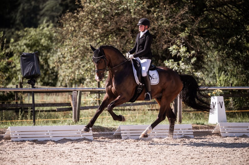 Zum Verkauf steht ein bildhübscher 6jähriger DSP Wallach v. Escolar x Royal Blend. Mit seiner besonderen Zeichnung und einem Stockmaß von 173cm zieht er alle Blicke auf sich. Er war siegreich in Reitpferdeprüfungen und DPA sowie hochplatziert in DPL, wobei besonders der Schritt und Galopp hervorzuheben sind. Lektionen der Klasse M sind bereits sicher. Im Umgang ist er stets freundlich und zugewandt, kleine Sprünge und Ausritte zur Abwechslung gefallen ihm sehr gut. Ein idealer Partner für die weitere Ausbildung mit toller Rittigkeit und Lernbereitschaft. Er wird regelmäßig geimpft, entwurmt und dem Zahnarzt vorgestellt. Röntgenbilder von 10/23 sind vorhanden inkl. Rücken, Hals und Genick. Für ein Video und weitere Informationen kontaktieren Sie uns gerne unter 01573 6205873 oder 01511 5323547.