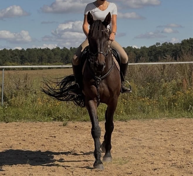 For sale is a beautiful 6-year-old DSP gelding (1.73 m) with excellent show jumping bloodlines and a lot of talent. He is characterized by a very sweet and clear-headed temperament. Ideal for ambitious competition or leisure riders who wish to continue his training themselves. Karli was backed at age 4 and is being trained gently and with variety. He already goes calmly out on hacks. He is also well-behaved in handling, at the blacksmith, and with the veterinarian. Due to his age and training level, he is not suitable for beginners or reintegration riders. A current health certificate is not available but can be arranged by the buyer. No health issues are present. He has an AV block, which does not restrict him (this condition can also be found in high-performance sport horses competing in show jumping). A test ride is possible at any time. A fee of €30 will be charged to prevent ride tourism. Please contact us if interested. Due to time constraints, a larger discount may be offered for immediate pickup or quick decision. No installment purchases or financing options available.