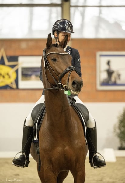 Herzensbrecher, Herzenspferd und toller Kumpel in liebevolle und fördernde Hände zu verkaufen! Wunderschöner, braver 7j brauner Wallach von Franklin x Cormint mit einem Stockmass von 166cm. Er ist gleichermaßen, seiner Abstammung entsprechend, für Dressur, Springen und Vielseitigkeit geeignet. Auch als Nachwuchspferd für den Fahrsport könnte ich ihn mir sehr gut vorstellen. Erst spät angeritten konnte er sich in seiner ersten Turniersaison mehrfach in A* und A** Dressur sowie Dressurpferde A und L platzieren und war auch direkt im Springen platziert. Im Gelände ist er zeitbedingt noch unerfahren aber sehr lieb! Auch durchs Wasser und über die ersten Natursprünge ist er direkt mit Freude gegangen. Er ist sehr menschenbezogen, liebt es zu kuscheln und beschäftigt zu werden. Er zeigt sich bislang mit einfach jedem Pferd super verträglich! Aktuell wird er aufgrund Zeitmangel meinerseits von einem 11j Kind mitgeritten und zeigt sich auch da sehr lieb und nervenstark. Generell verfügt er über eine tolle Arbeitseinstellung mit angenehmen Go und dazu mega sitzbequem! Er verfügt über gute Röntgenbilder von Ende 2024. Er macht jeden Tag Freude, und bringt einen oft zum Lachen unser kleiner Quatschkopf! Nur Langeweile ist nichts für ihn. Er liebt es, täglich seinen Job gut zu machen . Da ich noch 3 weitere Jungpferde habe, suche ich für diesen unverbrauchten Goldschatz ein förderndes 5 Sterne Zuhause Videos können in den nächsten Tagen gerne verschickt werden! Platz vor Preis! Privatverkauf Anfragen bitte per WhatsApp 015755032045