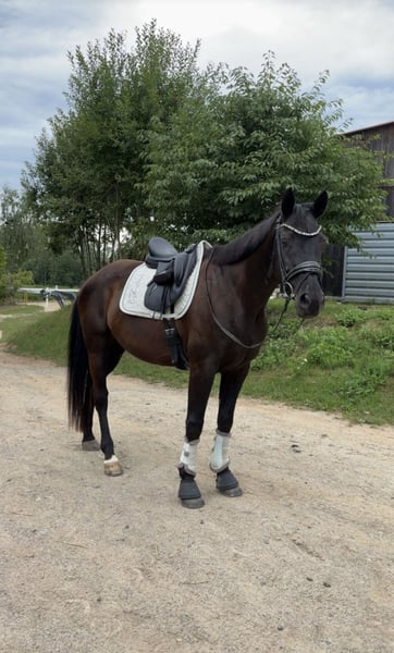 This 9-year-old DSP gelding (born 2016, height 16.1 hh, black) impresses with three expressive basic gaits and an honest character. He brings joy every day – whether in the arena, on trail rides, or at competitions. Sired by Hochmeister x Jazzman. In dressage, he is solidly trained up to A-level and already familiar with some L-level exercises. In show jumping, he has been competed at a solid E-level and also demonstrates talent in this discipline. Competition experience (WBO) is available. The gelding is completely healthy, well-behaved in daily handling and under saddle. He loads easily and is uncomplicated with the farrier and veterinarian. Regularly vaccinated and dewormed. Please feel free to contact us with any questions! Phone: 0173 2012706 Location: Reichenbach, 08468 Viewing and test rides are available by appointment at any time.