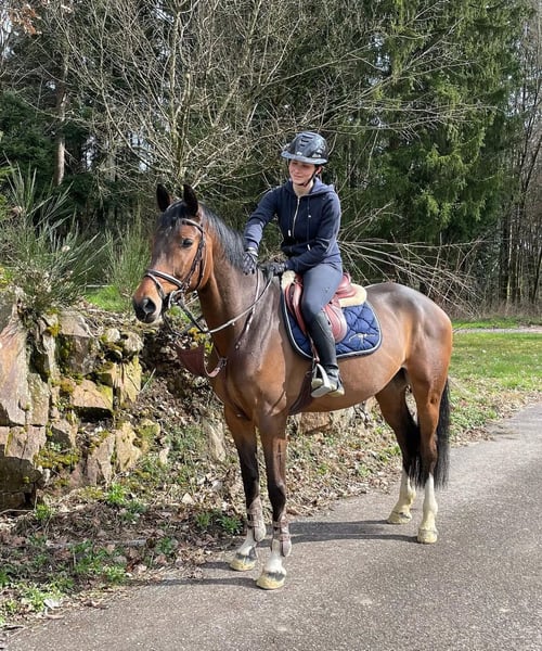 Im Auftrag sucht dieser wunderschöne, herzensgute Wallach ein tolles neues Zuhause. Er ist 9 Jahre jung und ca. 1,64m groß und kompakt gebaut. Charakterlich ist er sehr lieb, manchmal Fremden gegenüber etwas schüchtern, aber hat man sein Herz gewonnen ist er ein sehr treuer Partner. Er geht super gerne ins Gelände, hier kann er sich richtig entspannen und es macht ihm riesig Freude. Auch alleine kein Problem. Dressurmäßig ist er ebenfalls schön zu reiten. Durch seine manchmal schüchterne Art ist er eher kein Anfängerpferd. Im Springen hat er noch nicht viel Erfahrung, benötigt dadurch für mehr Ambitionen noch etwas Ausbildung. Im Umgang ist er ein echter Schatz, ob putzen am Anbindeplatz, Schmied oder Hängerfahren, für Balou alles kein Problem. Balou besticht durch sein sehr hübsches Aussehen, sein harmonisches Exterieur und ist gesund. 3 Jährig wurden bei einer routinemässigen Röntgenuntersuchung zwei kleine Zysten im linken Kniegelenk festgestellt, diese sind klinisch völlig unbedenklich und daher ohne Relevanz. Er war nie lahm. Beugeproben und klinische Untersuchungen sind alle negativ. Die aktuellen Röntgenbilder von 2025 und ein Bericht der klinischen Untersuchung dazu vom Tierarzt liegen vor. Eine klinische Ankaufsuntersuchung von 2024 ohne Befund liegt ebenfalls vor. Wenn sie auf der Suche nach einem hübschen, kompaktem Allrounder sind, melden sie sich gerne bei uns 01737482545 Gerne direkt per WhatsApp oder Anruf