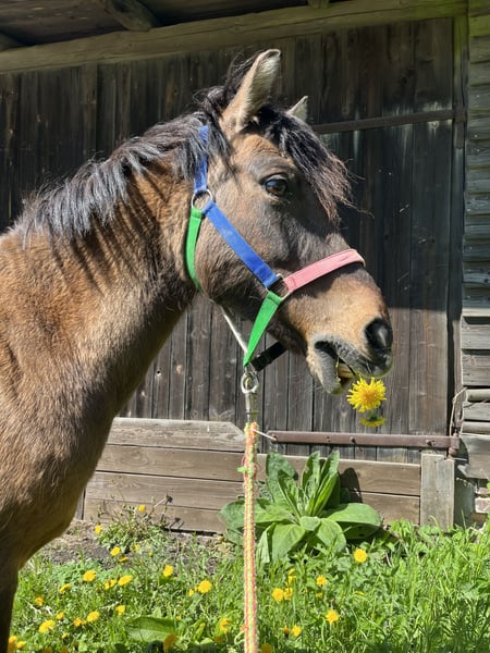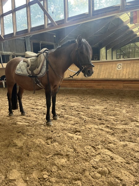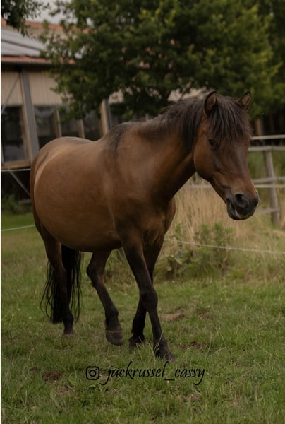 Die kleine Oni ist ein ganz liebenswertes Pferdemädchen. Sie ist seit Februar in meinem Besitz und war für meine Kinder gedacht. Sie sollte nebenbei im Schulbetrieb laufen. Leider is sie aufgrund ihrer niedrigen Ausbildung für unsere Gemeinschaft nicht geeignet. Sie kennt 24/7 Weide, Box oder Offenstall. Sie ist perfekt als Beistellerin, kennt unterschiedliche Altersgruppen, führen mit Kindern und von Kindern, longieren, betüdeln und Bodenarbeit. Sie lebt in einer Ponygemeinschaft und ist gut verträglich. Ich bin viel mit ihr und meinen Kindern (führend) im Wald und Wiese unterwegs gewesen. Das macht sie ganz prima. Sie hat Papiere, ist entwurmt, vom Schmied ausgeschnitten, geht auf den Hänger, beißt und tritt nicht. Ihre Zähne sind im April gemacht, sie ist von Physiotherapie Sommer behandelt worden. Ich habe Oni als ekzemfrei gekauft, leider hatte sie aber dennoch Probleme welche ich super in den Griff bekommen habe- seitdem ist sie problemfrei. Wenn du Interesse an Oni hast, melde dich gerne.