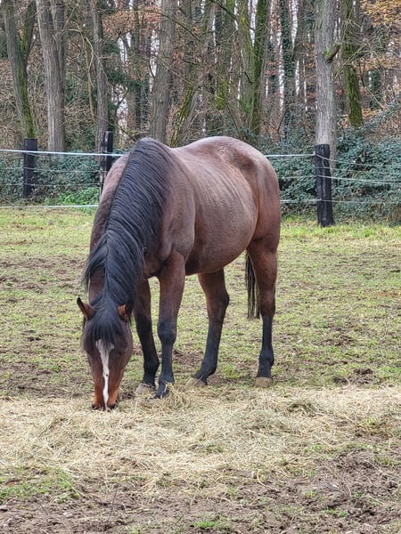 Vollblutstute, sehr liebenswert Einfach im Alltag, liebt es, gepflegt zu werden Ideal für Ausritte Rund um die Uhr auf der Weide oder im Stall Kann noch Leistung bringen Sehr schönes, tragfähiges Exterieur