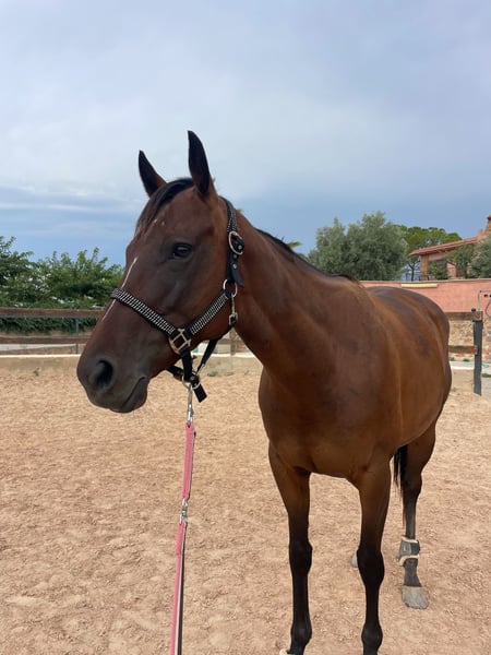 Opportunity to acquire a beautiful and elegant Thoroughbred mare! Main features: - Sex: Mare - Year of birth: 2020 - Color: Dark bay - Height: 15.7 hh - Breed: Thoroughbred - Discipline: Dressage This mare combines beauty, nobility, and talent, making her perfect for riders seeking a high-level mount for competitions or for pleasure in dressage. She has a very calm temperament and an excellent disposition for training. For more information and inquiries, please don't hesitate to contact me.