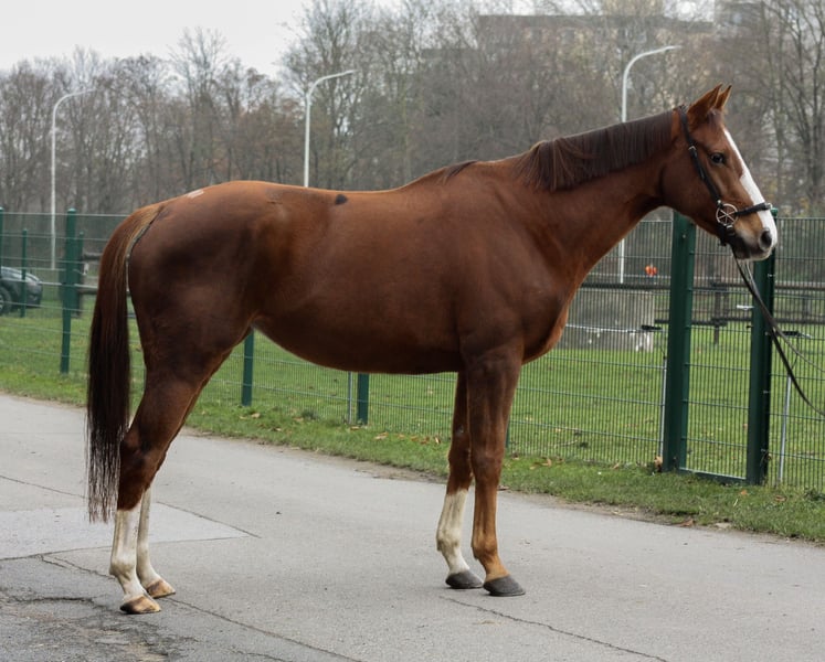 Z ciężkim sercem z powodów osobistych szukam nowego domu dla mojej wymarzonej klaczy Alexa. Alexa trafiła do mnie pod koniec ubiegłego roku prosto z wyścigowego stajni i zdobyła tutaj swoje pierwsze doświadczenia jako koń rekreacyjny. Zawsze starała się wykonywać powierzone zadania jak najlepiej i bardzo szybko się uczyła. Pewnie porusza się we wszystkich trzech chodach na placu i w hali, będąc przy tym zawsze bardzo łagodna i uważna. Obecnie jest w trakcie intensywnej szkolenia na konia rekreacyjnego i aktywnie poznaje pomocne sygnały jeździeckie. Znana jest jej również jazda na lonży, praca na ziemi, lonżowanie oraz jazda w terenie, i we wszystkim pokazuje swoją najlepszą stronę, zawsze chętna do pracy. Wykonała również kilka skoków, wykazując talent, który jednak wymaga jeszcze rozwinięcia. Ze względu na jej ruchy, wyobrażam ją sobie dobrze w wszechstronnej jeździe lub rekreacji. Typowa dla koni pełnej krwi jest bardzo wrażliwa i zawsze dostosowuje się do temperamentu jeźdźca, dlatego szukam dla niej spokojnego i wyczulonego opiekuna, który podejdzie do niej bez presji i będzie się z nią kontaktować. Zawsze jest przyjazna i łagodna wobec dzieci i ludzi, jednak potrzebuje różnorodnej pracy i stymulacji, aby przede wszystkim była mentalnie zaangażowana. Obecnie Alexa jest wierzchem z przednimi butami i radzi sobie z tym bardzo dobrze, ale z cierpliwością można rozważyć również jej odstawienie od podków. Zęby będą poddane kontroli w połowie grudnia, a regularnie jest również prezentowana fizjoterapeucie. Jedynym mankamentem, który Alexa posiada, jest to, że w stresie zaczęła gryźć, co jednak w najmniejszym stopniu jej nie przeszkadza. Przebywa u nas w wyłącznie stada klaczy na pastwisku przez cały rok, będąc raczej niskiego rangą i unikając konfliktów. W razie potrzeby, za dodatkową opłatą, mogę sprzedać jej wyposażenie, w tym siodło Bates Spring 16,5 cala (kupione w marcu 2025), derki, ogłowie oraz różne drobiazgi niezbędne w codziennej opiece. Jeśli jesteś zainteresowany naszą "księżniczką", proszę o kontakt przez WhatsApp: 0176 / 61695563.