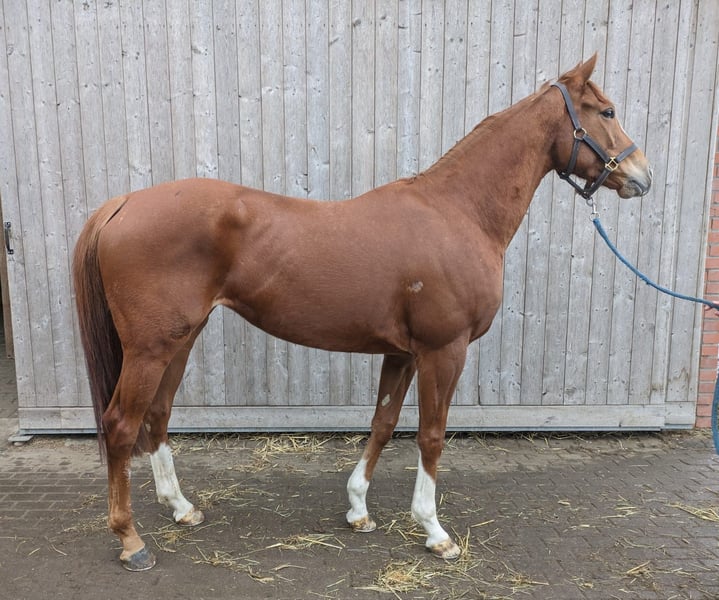 Die liebe Stute TECH ATTACK (v. Counterattack a.d. Tech Engine) sucht nach ihrem Menschen, wo sie ankommen und sich wohlfühlen kann. Tech Attack ist 6 Jahre alt, hat den Rennsport bereits vor geraumer Zeit verlassen, ist gesund und weist keinerlei Unarten auf. Sie läuft derzeitig barhuf, lebt im Offenstall und ist sozialverträglich in der Herde. Tech Attack ist eine einfühlsame und unerschrockene Stute, die sich gern dem Menschen anschließen möchte. Bei uns im Stall ist sie mit ihrer sanften und entspannten Art der Liebling für Schmuseeinheiten bei Groß und Klein. Sie ist ein Pferd für sämtliche Beschäftigungen vom Boden aus. Für reiterliche Aktivitäten müsste sie neu antrainiert werden. Tech Attack wird im Auftrag vermittelt und kann bei Interesse gern persönlich kennengelernt werden. Standort: 15345 Altlandsberg Transport bundesweit möglich.
