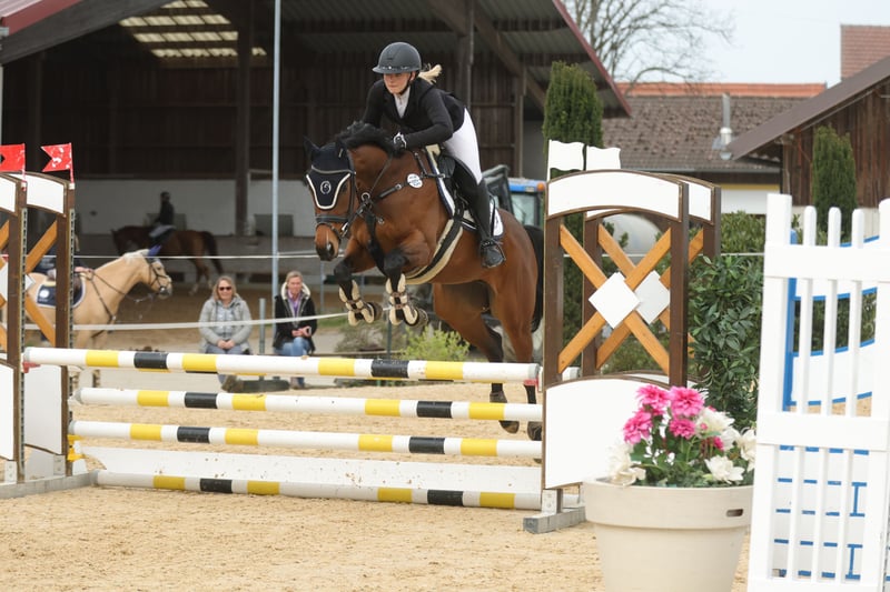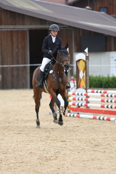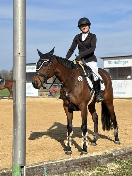 Ucella is een ontzettend lieve en eerlijke merrie, die veel energie en enthousiasme meebrengt, maar altijd goed te hanteren is. In het afgelopen jaar en dit jaar heeft ze samen met een jonge, minderjarige amazone meerdere winstpunten behaald in klasse E en A springen, en heeft ze haar eerste leidingrijles met een klein meisje gelopen. Ook hier was er natuurlijk een mooie lintje te winnen. Ze wil altijd graag gefallen! Onze focus lag vooral op springen. "8 benen" zeggen we altijd, omdat ze echt heel snel is en geen fouten wil maken. Hier ligt zeker talent voor meer, wat ze ons in de training al meerdere keren heeft bewezen. Vrijspringen en grondwerk, evenals kalmeringstraining, kent ze goed. Met een halster is ze ook al bereden. Ook kinderen en honden die om haar heen springen, vormen geen probleem voor haar. Ze is typisch voor een volledigbloeder wat gevoelig en past zich heel sterk aan het temperament van haar ruiter aan. Daarom zou een ruiter die al wat ervaring heeft en haar zekerheid kan bieden, ideaal zijn. Momenteel staat ze in een groep van drie merries en is van haar aard rangondergeschikt. Ze is voor- en achterbeslagen en gaat daar heel goed mee om. Ik zoek voor Ucella iemand die haar veelzijdig kan bezig houden. Ze is geschikt voor een jongere ruiter die nog samen met het paard wil leren, maar ook voor een meer ervaren ruiter. Ze is ook interessant voor de veelzijdigheidssport, al heeft ze daar tot nu toe nog geen ervaring mee opgedaan. Tandarts en fysio worden regelmatig ingeschakeld. Ucella wordt verkocht met haar volledige uitrusting, die bij de prijs inbegrepen is. Dit bestaat uit: zadel, hoofdstel, deken, onderdeken en alle kleine spullen die je nog nodig hebt. Ze wordt alleen in de allerbeste handen verkocht! Locatie: 85445 Oberding Bij interesse graag bellen naar: 0176-24989677 Video’s volgen binnenkort.