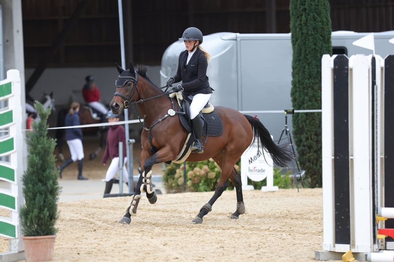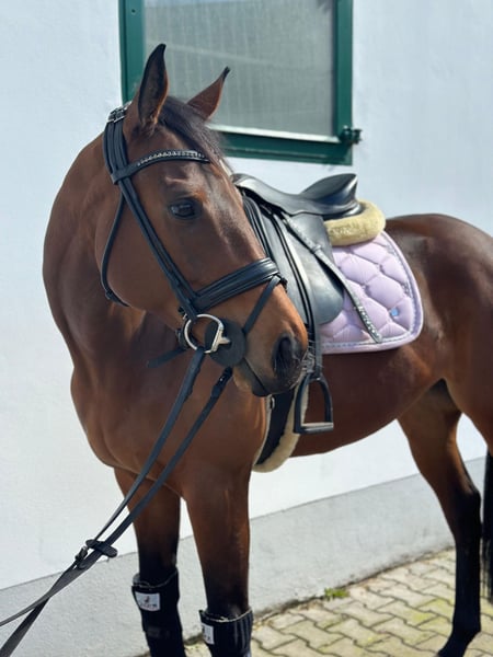 Ucella ist eine zuckersüße, ehrliche Stute, die mit viel Go ausgestattet ist, aber immer gut händelbar ist. Dieses und letztes Jahr hat sie mit junger, minderjähriger Reiterin etliche Schleifen in E und A Springen gesammelt und ist ihre erste Führzügelklasse mit kleinem Mädchen gelaufen. Auch hier gab es natürlich ein Schleifchen. Sie möchte immer gefallen! Hauptaugenmerk lag bei uns im Springen. „8 Füße“ sagen wir immer, da sie wirklich sehr flink ist und keinen Fehler machen möchte. Hier ist definitiv Vermögen für mehr vorhanden, was sie uns im Training auch schon mehrmals bewiesen hat. Freispringen und Bodenarbeit, sowie Gelassenheitstraining kennt sie & mit Halsring wurde sie auch schon geritten. Auch Kinder und Hunde, die um sie herum hüpfen machen ihr überhaupt nichts aus. Sie ist typisch für einen Vollblüter eher sensibel und passt sich sehr stark dem Gemüt ihres Reiters an, daher wäre ein Reiter, der schon etwas kann und ihr Sicherheit gibt, ideal. Aktuell steht sie in einer 3 Gruppe Stuten und ist vom Wesen her rangniedrig. Sie ist vorne beschlagen und kommt damit sehr gut zurecht. Ich wünsche mir für Ucella jemanden, der sie vielfältig beschäftigt. Sie ist sowohl für einen jüngeren Reiter, der noch etwas zusammen mit dem Pferd lernen möchte, aber auch für einen erfahreneren Reiter geeignet. Auch für die Vielseitigkeit interessant, hier hat sie bisher aber noch keine Erfahrungen sammeln dürfen. Zähne sind gemacht und auch der Physio behandelt sie regelmäßig. Ucella wird mit ihrem kompletten Equipment, welches im Preis inkl. ist, verkauft. Dazu gehört: Sattel, Trense, Decke, Unterdecke und alles an Kleinkram was man sonst noch so brauchen kann. Sie wird nur in allerbeste Hände verkauft! Standort: 85445 Oberding Bei Interesse bitte unter: 0176-24989677 melden Videos folgen zeitnah.