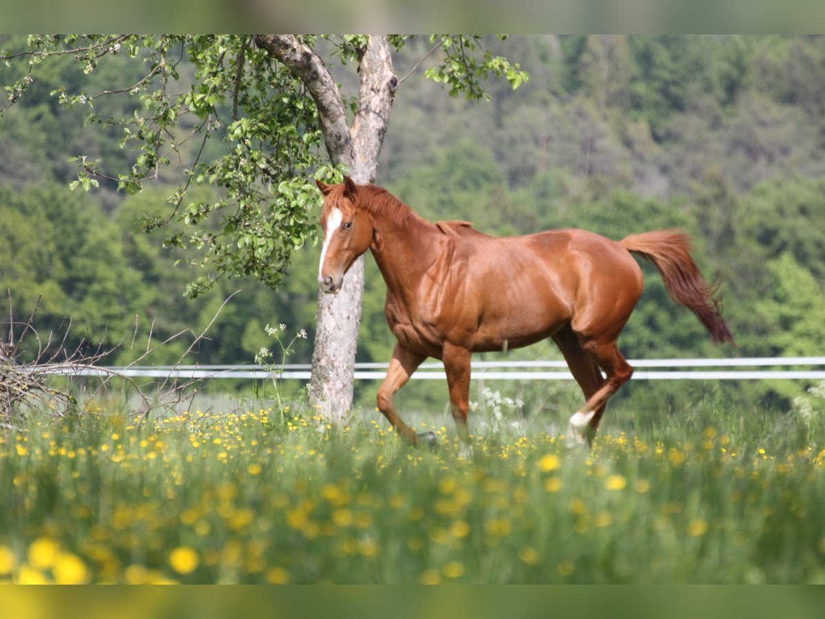 Navaja- 7jährige Vollblutstute abzugeben (Dawn Approach – Big Shuffle), 162cm groß, super freundlich und rittig. Sie stand nun 1 Jahr barhuf auf Koppel wegen Hufgelenksentzündung im Nov. 2024. Röntgen und Gelenkflüssigkeit ist in Ordnung, noch leicht lahm auf hartem Boden. Mit gutem Beschlag wieder anschiebbar oder aber für die Zucht. Extrem netter Charakter, anhänglich und verständig, gut im Freizeitbereich geritten, kennt Haltung im Freizeitstall und momentan Dauerkoppel ohne Probleme. Schmiede - und verladefromm, im Umgang super unkompliziert und gut erzogen. Hübsches, kräftiges Pferd, rittig und willig in allen Lebenslagen. 1500€ Tel.: 0151 – 17285960