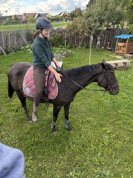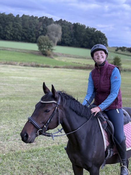 Ich suche für meine Vollblut Stute „santana“ eine reitbeteiligung oder jemanden, der sie zukünftig zur Verfügung nehmen möchte (stallgebunden). Als reitbeteiligung dürftest du so oft kommen, wie du möchtest :) (Preis wird an die Tage angepasst). Sie steht noch am Anfang ihrer Reiterlichen Karriere, da ich sie erst vor ein paar Monaten übernommen habe und wir mit dem anreiten nochmal komplett von vorne begonnen haben. Du wärst also an der Ausbildung und Förderung mit beteiligt, demnach wünsche ich mir jemanden, der bereits genug Erfahrung mit Pferden hat und sicher beim reiten ist. Sie wird vielseitig vom Boden gearbeitet, war aber bereits mit im Gelände, unter dem Reiter, und zeigte sich hierbei sehr brav. Wir haben auch schon mit leichter Dressur Arbeit begonnen (Grundlagen), hierbei zeigt sie sich mehr als brav und sehr gelehrig. Santana hat eine Größe von ca 153cm, ist eher schmal gebaut, deshalb kein Gesichtsträger (bis max. 70kg). Unser Stall verfügt über einen paddock, welcher bedingt zum reiten nutzbar ist, sowie einen roundpen mit Naturboden. Die Nutzung der Anlage niederoberbach (Reithalle, reitplatz und überdachter longierzirkel) ist möglich, jedoch nur gegen eigene Kostenübernahme (ca 30€ monatlich).