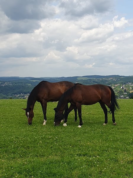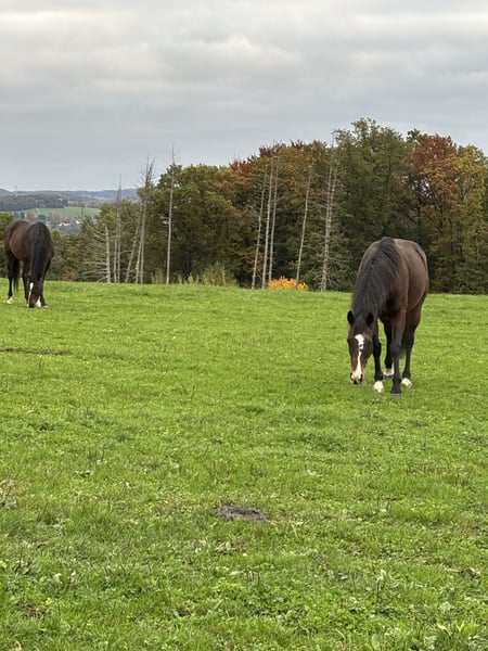 I am offering my 11-year-old, approximately 1.60 m tall Thoroughbred gelding, Alaris (born April 17, 2014), for sale via this platform. Ali was actively and successfully racing until the end of 2024 and has now come to rest with me. Ali is a very gentle, sensitive horse who enjoys pleasing his rider. He needs some time to settle into a new environment and build trust with new people. Once he has gained confidence, he proves to be a very kind and agreeable partner. Stabling: For Ali, I am looking for a home with plenty of movement. The herd should not be too large, as too much commotion can quickly cause him stress. Currently, he lives with me in an open stable with access to about 12 hectares of pasture on a farm. He is kept together with a second Thoroughbred gelding. At times, he has had contact with cattle, but he has never fully adapted to them and continues to react with fear and stress. The general farm activity with large machinery does not bother him at all – he remains calm, relaxed, and even curious in such situations. Health: Ali has osteoarthritis in both front legs (X-rays available). He receives appropriate joint supplement feed from Masterhorse to support him. Depending on the weather, he occasionally paces during trot. I am happy to share more details personally. Use: Ali is offered solely as a companion horse and only to responsible, calm owners. He is very suitable for groundwork and daily activities outside of riding. Option: Alternatively, he could be loaned with full costs covered and a contract, but only within approximately 100 km radius. The price is secondary; my main wish is for him to find a good home. A care contract is also welcome. ❗ No emergency sale If you are genuinely interested, please send me a message :)