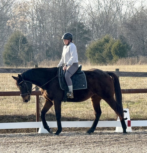 Tall, dark, and handsome! Video! https://youtube.com/shorts/iMvOa_gc28o?si=BmMHbhAxvqsHBQXz Wayne’s Legend is a 5-year-old, 16.1h, Jockey Club–registered Thoroughbred gelding with the temperament everyone wants and the talent to go in many directions. Wayne is steady, kind, and willing, with a true can-do attitude. He was started twice as a late two-year-old and quickly decided racing wasn’t his calling. Since then, he has blossomed in a sport-horse program and is confidently going walk-trot-canter in both directions with a lovely, forward stride. He has three months of professional dressage training and has also started over small jumps and ground poles—progressing steadily and showing real promise. On the ground, Wayne is a gentleman: he loads, bathes, ties, and handles well in the barn. He is very steady, adult-amateur appropriate, and has that sweet “in-your-pocket” personality everyone loves. He has a solid foundation in groundwork. Under saddle he will leg yield, side-pass, and back. Athletic, good-minded, and extremely versatile, Wayne is ready to shine in dressage, jumping, eventing, or competitive trail. This is a fantastic opportunity to bring along a talented gelding with unlimited potential. Come meet this impressive fellow—you’ll fall in love.