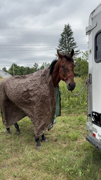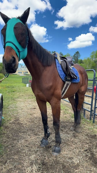 ⚡️ Nitro ⚡️ Nitro is a 16.2hh, 5-year-old OTTB (turning 6 in March). I’ve had him for a little over 8 months, and he’s the biggest sweetheart. He is currently barefoot and stands well. He has been around children, dogs, and cats, and has done perfectly fine with all of them. He loves other horses. When I first got him, I did extensive desensitizing and groundwork with him, and he handled everything well. He was ridden over the summer but has had a few months off. He would need a confident rider, not a beginner. Unfortunately, I don’t have the time or finances to keep him going, as I am currently focused on my other horse. He is used to snowmobiles, race cars, and other commotion. He lives outside 24/7 and is not spooky at all. I really wish I had clicked with this guy, but I believe finding him the right home is what’s best for him.