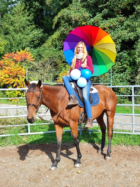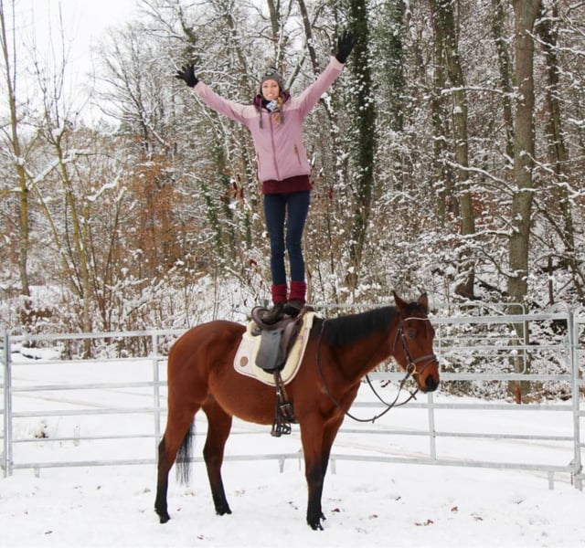 Foxred – Versatile riding horse with great potential! **Please note:** Priority is given to those who can provide a loving home with year-round turnout / robust management! A 6-year-old, 165 cm tall, bay Thoroughbred gelding with modern bloodlines: Sire: ANJAAL, Dam: AMARY. Fox immediately captures attention. He is very intelligent and straightforward in handling, fearless, and attentive to humans. Under saddle, he impresses with his reliability, smooth movement, and enough sensitivity for the big arena or work with children and young riders. He is eager to work and consistently impresses with his friendly nature. He works well alone, does not require the security of other horses, and adapts quickly to new environments. Ideal for off-site training, competitions, or trail riding. His calm demeanor and impeccable character make him a true pleasure. His three good basic gaits are comfortable to sit and offer great potential for more front-end activity and expressive movement. His connection is refined, making it enjoyable for the rider to execute learned movements. Fox also loves the terrain and is a reliable partner whether in company or on solo rides! He remains very relaxed and uncomplicated in this setting as well. **** www.handmade-horses.de **** ✔️ Well-schooled and trail-safe ✔️ Suitable for beginners ✔️ Suitable for children and young riders ✔️ Healthy ✔️ Vaccinated and dewormed ✔️ Full papers and equine passport ✔️ Farrier- and load-friendly A pre-purchase examination can be arranged according to your preferences. Getting to know each other & trial riding (€45), transport to the new home, etc., are possible after prior arrangement and at the buyer’s expense! Fox is well socialized, farrier- and load-friendly, barefoot, and will only be sold into a species-appropriate environment with access to pasture all year round. He is a pony at heart and therefore needs large pasture areas (at least 5000 sqm, even in winter) to stay healthy and happy. He prefers robust management and does not want a box or a small paddock. Please contact me via WhatsApp (01778787640).