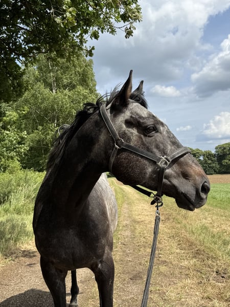 Hallo zusammen , ich suche eine zuverlässige RB für meinen 6 Jahre alten Vollblut Wallach. Vorerst für 1-2 mal die Woche im Reitunterricht am Hof damit sich Pferd und Reiter erstmal richtig kennen lernen können , später ist auch öfter reiten möglich bzw auch ausreiten und alleine reiten wenn alles passt und harmoniert . El Royale hat wenig Go für einen ex Galopper und hat ein sehr ruhiges Gemüht . Er ist immer freundlich und lässt sich einfach reiten. Er steht an einem Ponyhof mit immer freundlichen und netten Hofbesitzern und Einstallern. El Royale besitzt einen Vielseitigkeitssattel sowie ein Reitpad. Falls du Interesse hast melde dich gerne . Lg Maike