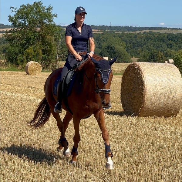 Zum Verkauf steht ein bildschöner 6-jähriger Fuchs-Wallach, 1,70 m - Engl. VB, der mit seinem Ausdruck und seinem klaren, ehrlichen Charakter sowie guten GGA begeistert. IRE-GB Abstammung Schonend 4 jährig angeritten und nach einer Pause von fast zwei Jahren (nicht verletzungsbedingt) nun wieder in der Arbeit, zeigt er sich nun äußerst motiviert, sehr lernwillig und leistungsbereit. Trotz der Trainingspause ist er fein an den Hilfen, brav im Umgang und unter dem Sattel. Aktuell angesprungen bis 90 cm überzeugt er mit seiner Übersicht und selbstsicheren Arbeitseinstellung. Auch in der Dressurarbeit zeigt er sich mit immer mehr Ausdruck und bietet gutes Potenzial als Nachwuchspferd zur weiteren Ausbildung für ein späteres L/M-Niveau in Springen und/oder Dressur. Geländesicher, sowohl alleine als auch in der Gruppe – ein echter Partner, der Vertrauen schenkt und mit Ruhe und Gelassenheit die Natur erkundet. Auch im Freizeitbereich ohne Turnierambitionen ist er ein toller Partner. Grundvoraussetzung wäre hier jedoch trotzdem das Fordern und Fördern. Schmiede- und verladefromm und unkompliziert im täglichen Umgang. Er sucht einen Partner der aktuell auf solidem A Niveau ist und ihn weiter fördern möchte. Er ist durchaus auch Anfänger geeignet, jedoch würde hier sein Potential nicht ausgeschöpft werden. Dieser Wallach bringt beste Voraussetzungen mit für eine schleifenreiche gemeinsame Zukunft oder viel Spaß auf dem Reitplatz und im Gelände. Standort: Nähe Dingelstädt Im Auftrag: Bevorzugt in fördernde und liebevolle Hände abzugeben! Keine reine Gruppenhaltung (Aktivstall/Trail), tagsüber Weide/Paddock in der Gruppe möglich, sehr verträglich, nicht dominant. Auf Grund zur Vorbeugung von Reittourismus werden zum Termin für ein Vor-/ und Probereiten eine Gebühr von 50,- Euro erhoben, welche bei Kaufinteresse gegengerechnet werden kann. Equipment kann teils übernommen werden.