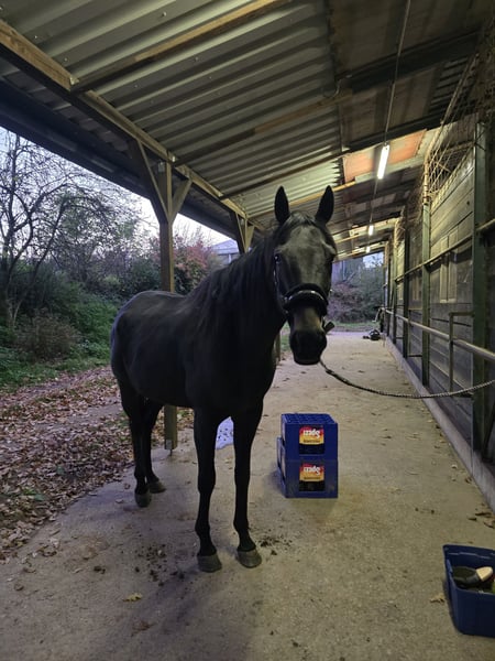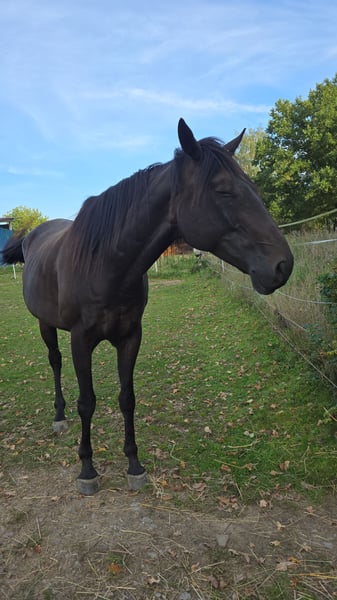 For sale is our 8-year-old gelding, Piccoli. He was purchased four years ago from the racing industry and has only competed in four races. Due to his temperament, he is not suitable for racing, but he is a eager learner, affectionate, and very well-behaved—ideal for a more experienced rider. He has been trained in classical riding by us and has been introduced to dressage twice a week. Occasionally, he has also been jumped over small obstacles. He is an absolute sweetheart on the longe and in handling, familiar with groundwork, bitless riding, and riding without a saddle. Currently, he is barefoot and kept in a large paddock with daily turnout. A meet-and-greet and trial ride are of course possible. We are selling him with tack and accessories due to personal reasons. He is vaccinated, dewormed, and we are not aware of any health issues. If interested, photos and videos are available.