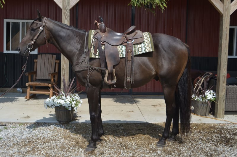 "AVAILABLE ON ONLINE HORSE AUCTION AT www DOT MagicHorseAuction DOT com BIDDING OPEN NOW thru TUESDAY | September 30TH! - BUY IT NOW AVAILABLE! *Final price will be determined on auction site* CONSIGNOR CONTACT INFO: McKenzie Cramer 330-307-0323 LOCATION: Mantua, OH Masked Marauder is a 2018 16.2h BIG bodied gelding by Palace Malice o/o a Speightstown mare. This chonky boy is one from our personal string! You will not find an easier keeper than M&M. He loves farm life with turnout and settles right into a laidback lifestyle. He has been raced but has since been restarted and retired off the track sound in every way. He’s a very laid back, easy going, natured horse. He has a smooth and fluent walk, trot and lope each direction. Trail horse deluxe, or if you want to dabble around at shows he loves that too! He is brave and bold on the trails alone, happy to lead but will follow a group. Just a very game fun guy. Medium in pecking order, turned out with mixed group. Rides English and western. If you’re looking for a horse to give you confidence under saddle, that is more then capable of any job m&m is your guy. He is 100% sound with no vices. He is great to handle on the daily, loves attention. Stands great for the farrier, to be groomed, and for the vet/farrier. He is up to date on everything. We can arrange shipping anywhere in the US!