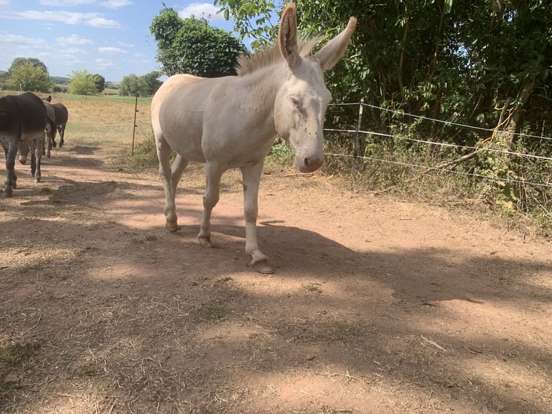 Billy is still looking for his forever home. He is a lovable donkey stallion registered with the Stadl Paura Breeding Association. Born in 2018, he is very gentle, was part of a group of four geldings, and is highly social, curious, and open to humans. He has an approximate height of 1.20 meters (about 12 hands) and has previously been kept in a robust management system as part of a grazing project, which has now been discontinued. Billy is halter-trained and loves cuddling. He has been dewormed, vaccinated, and his hooves have been recently trimmed. If you're interested or have further questions, please feel free to contact us.
