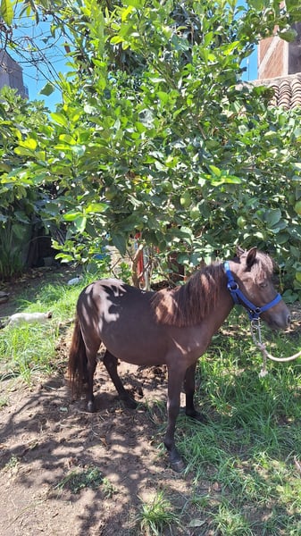 **Sales Announcement: Falabella Pony Stallion** Perfect for children For sale is a magnificent Falabella pony, stallion, born in 2022. This beautiful bay specimen stands out with a height at the withers of 79 cm and a sweet, affectionate character. Coming from a renowned breeding farm, he is a high-quality pony, ideal for families, children, and horse riding enthusiasts. For more information and to arrange a visit, please do not hesitate to contact me. Don't miss the opportunity to add this fantastic companion to your home!