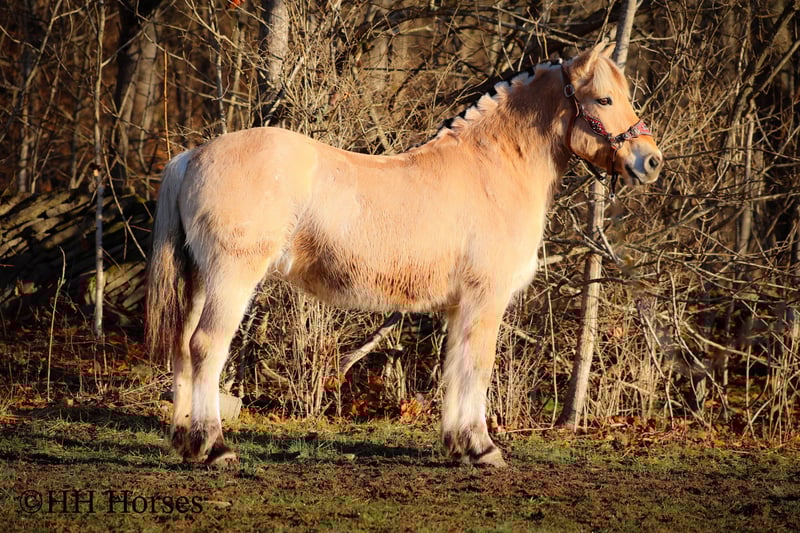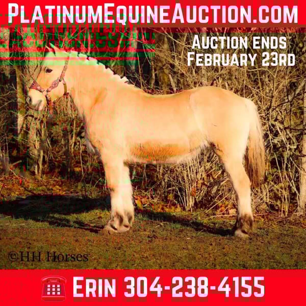 ONLINE AUCTION Place your bids at www.PlatinumEquineAuction.com Starting Bid $3500 Auction ends February 23rd, 2025 Need a new saddle? Check out White Rock Saddles on our website or Facebook! This is “COUCH POTATO”, a family friendly, quiet, safe, and gentle PUREBRED NORWEGIAN FJORD MARE that has all the great characteristics of the wonderful breed. She is 14.2 hands tall and 12 years old. The Fjords are one of the oldest and purest breeds in the world. This mare has great agility, a strong neck, sturdy legs, and excellent feet. She is broke to ride and drive. This mare has been ridden by beginners and youth riders. She will not take advantage of her rider. She will only go as fast as she is asked to and she is patient. She stands to harness, tack, mount, hitch, and groom. She loads, bathes, stands tied, and hauls with no fuss. She will trail ride anywhere you want to go quietly under saddle or harness. She will cross any depth of water and she is extra sure footed. She is cautious, kind, confident, and fun. She is safe for beginner teamsters and is uber user friendly to harness and drive. She is traffic safe and has been in holiday parades, wagons trains, and weekend camping trips. She has pulled a cart, sleigh, wagon, and farm machinery. She is broke nice and any level equestrian can appreciate how nice she is trained and how well she carries herself. She is a big comfy couch to ride, being extra smooth and keeping herself well balanced when maneuvering through rough, rocky, and steep terrain. She is a great horse for anyone to enjoy. Located in Flemingsburg, KY. For more info or to make a BUY IT NOW offer contact HH Horses Erin 304-238-4155. ONLINE AUCTION Place your bids at www.PlatinumEquineAuction.com Starting Bid $3500 Auction ends February 23rd, 2025 Need a new saddle? Check out White Rock Saddles on our website or Facebook!