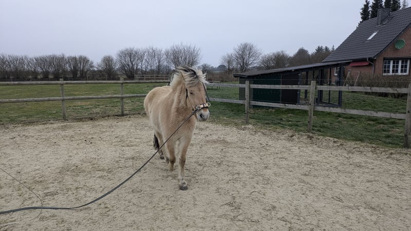 For sale: my 4-year-old Fjord horse (born June 15, 2022) with a current height of 13.6 hands. She is familiar with basic foal training and has been lunged. She receives regular vaccinations and hoof care from a professional farrier. She holds full registration papers with the Schleswig-Holstein Horse Breeding Association, so she is also suitable for breeding. Her sire is a licensed stallion, and her dam was a broodmare for many years with a Fjord horse breeder. She is located at my home and can be viewed in person. Additional photos and videos available upon request.