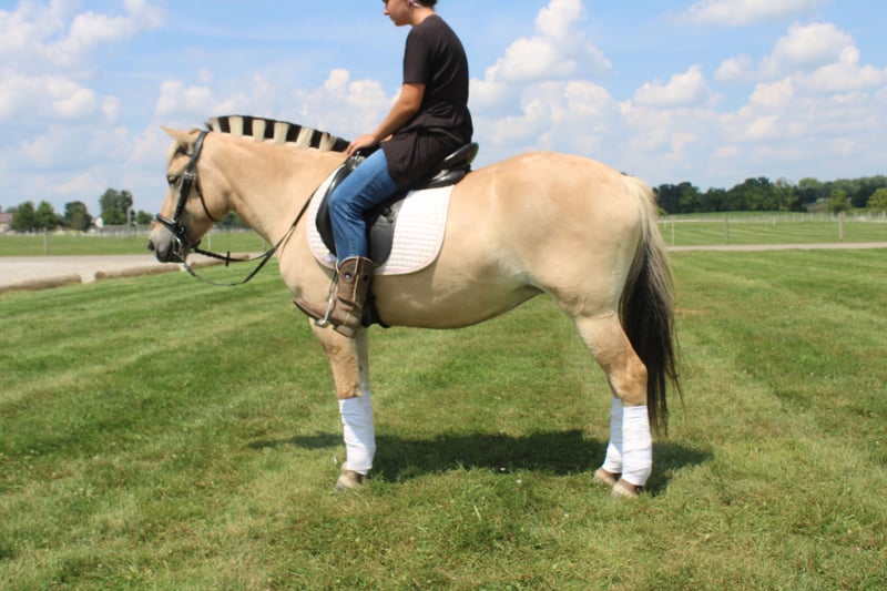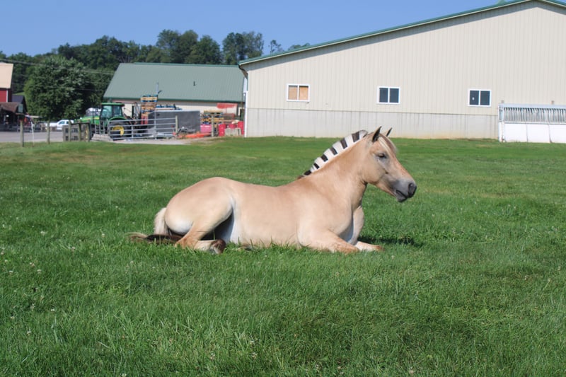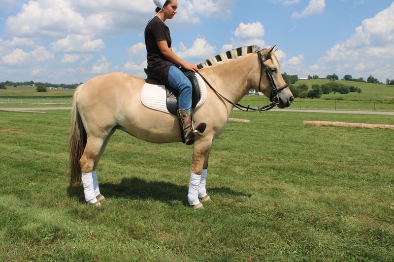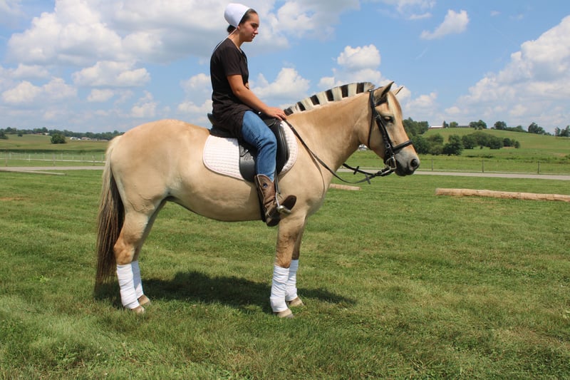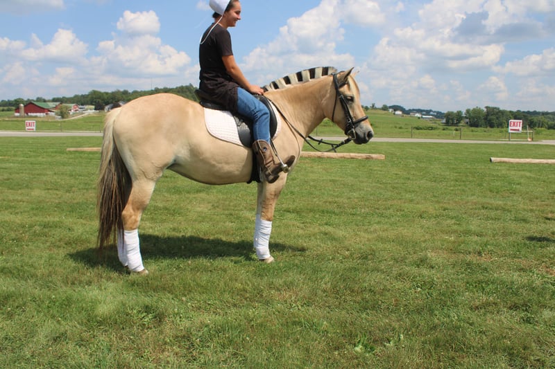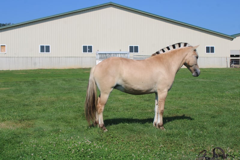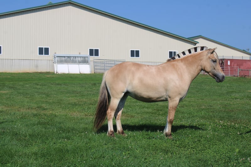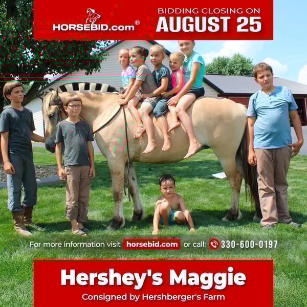 ⭐️ 𝐀𝐔𝐆𝐔𝐒𝐓 𝓐𝓵𝓵 𝓢𝓽𝓪𝓻 𝓛𝓲𝓷𝓮𝓾𝓹 ⭐️ Happening now thru MONDAY | AUGUST 25th - Available EXCLUSIVELY on HorseBid's website! For more details and to register visit: www.Horsebid.com CONSIGNOR CONTACT: Hershberger's Farm 330-600-0197 LOCATION: Millersburg, OH BREED: Norwegian Fjord REGISTERED: No COLOR: Buckskin HEIGHT: 14.2 AGE: 5 GENDER: Mare Hershey's Maggie says look at my fancy haircut!! She is a 5 year old Norwegian Fjord mare. Maggie is a little extra special and the type that you don't see every day! She is very well broke to ride and drive and is 100% KIDSAFE and is gentle to be around. In heavy traffic and comotion she is very sane and does not spook easily. When the grandkids come to grandparents place Maggie is always the highlight wether it is riding her through the sprinkler or taking her for a trail ride. She is very gentle and slow with the kids but when an adult gets on and asks her she is also very willing to work. She lopes collected circles and even does some small jumps when asked to. Maggie has a very willing attitude and doesn't mind going slow or fast. She gives buggy rides around the farm and on some days she get to climb up the steps to the petting area balcony and just look good and take pets a treats from whoever passes by. About a month ago Joseph took Maggie on a 3 day overnight trail ride and Maggie did great. She doesn't mind riding in a group or solo. Also one of the girls here at the farm needed a horse for a moonlight ride so she took Maggie and she did a great job. It was dark with glowsticks everywhere and a big noisy crowd with horses and riders everywhere and Maggie did very well. She rides English or Western and does very good on leg pressure and side passes nicely both directions. Here is a cute mare that will suit just about anyone. She is very fancy and a little different from most others!! You'll be sure to have something that your neighbor doesn't!!! History about the Breed.... It is one of the worlds oldest and purest breeds. It is believed that its ancestors migrated to Norway and were domesticated over 4,000 years ago. Archaeological excavations at viking burial sites suggest that horses of this type have been selectively bred for at least 2,000 years. The Fjords were used by the Vikings as war mounts and have been used for 100s of years as farm animals in western Norway. The Fjord is strong enough for heavy work such as plowing fields and hauling fire wood, yet is light and agile enough to be a super trail horse.