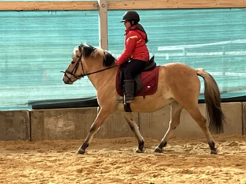 Sani Our sweet Fjord mare is 8 years old and stands at 1.40 meters. She is very gentle and easy to handle, making her suitable for children. She has been ridden and driven. She is absolutely reliable in the field… Sani is familiar with the riding arena and lunging. She knows various animals and vehicles… Sani is an absolutely wonderful family and leisure pony. She comes with full papers, is microchipped, and dewormed.