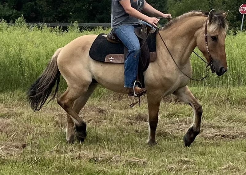 Looking for a buyer for my sweet gelding Aksel. He was sent to the trainer for three months last year, and the trainer was very pleased with his temperament. He is thought to be a Fjord/Fresian cross, but I have no paperwork to prove so. I haven’t had the time to ride anymore, and I hate to see him just sitting in the pasture. Videos available upon request