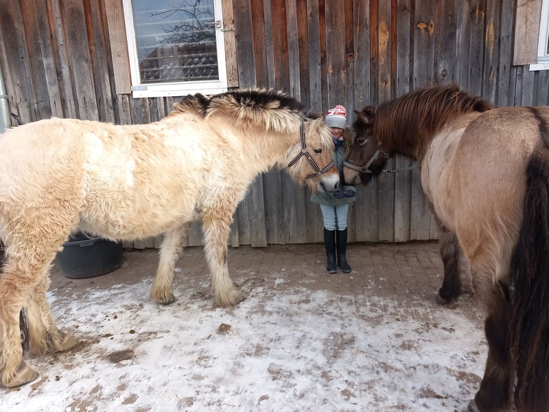 Suche Unterstützung bei Reiten und Pflege für meine beiden Ponys, Isländer Stute und Norweger Wallach. Beide Pferde sind brav im Umgang und unterm Sattel, haben aber ihren ponytypischen Sturkopf, so dass man sich dchon durchsetzten können muss. Du solltest mindestens 12 Jahre alt sein und selbständig im Umgang mit Pferden oder ein verantwortungsbewusstens, im Umgang mit Pferden geübtes, Elternteil im Hintergrund gaben. Wir haben keine Halle, daher solltest Du wetterfest sein. Gerne such Freundinnen oder Eltern- Kind Paar. Die Ponys sind verlässlich im Gelände und nicht schreckhaft, kennen Kinder, Hunde, Autos und Landmaschinen.Näheres gerne in PN