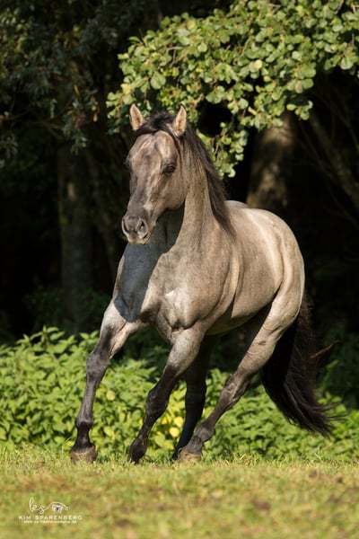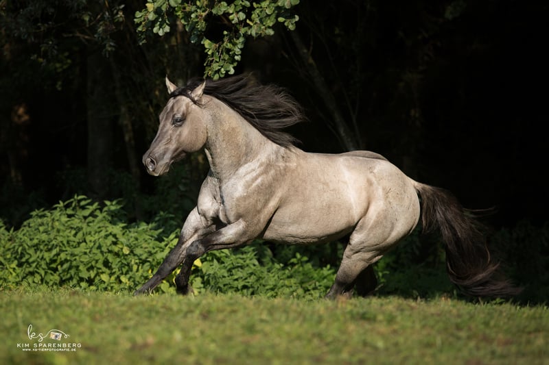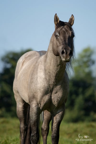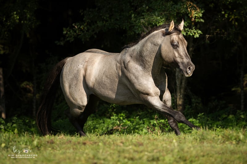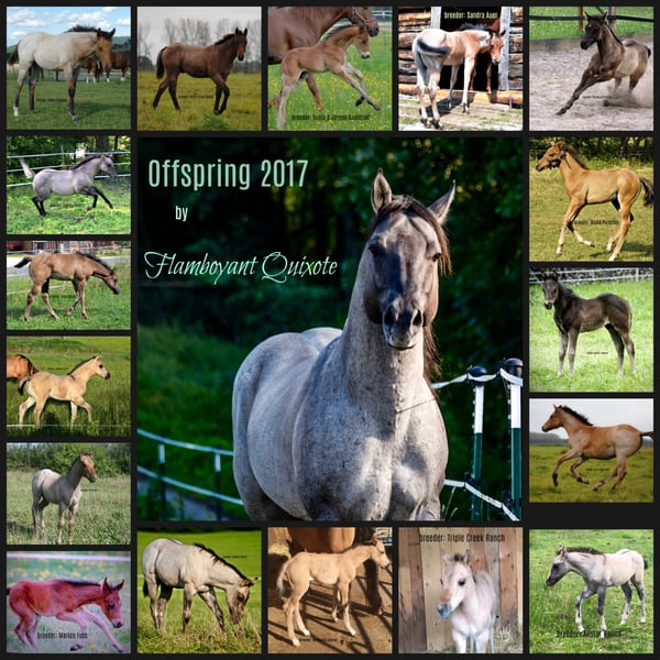 FLAMBOYANT QUIJOTE kommer från beprövade AQHA Ranch Horse linjer (Foundation dela FQHA 98%). Det är det framgångsrika resultatet av 40 års avelserfarenhet! Dess uppfödare i Montana är kända för sina vackra hästar med extremt älskvärd karaktär och enkel träning. Deras hästar har bevisat sig i årtionden i alla tänkbara discipliner, liksom i rancharbete och som familjehästar. Flamboyant har också en godmodig karaktär och är bra att rida av svagare ryttare. Den är utrustad med en korrekt byggnad, starka muskler, stark grund, hårda, svarta hovar och ett bedårande huvud. På toppen har den en mycket exklusiv färg: Grullo Roan och är homozygous för svart. Flamboyant är Hingsten för alla som uppskattar quarterhästarnas ursprungliga egenskaper: mångsidighet, nervstyrka, ras typiskt utseende OCH atletism! 5 paneler n/n, samt IMM/MHI 1 och OLWS n/n Täckskatt: 750 Euro (tidig fågelrabatt 10 %) Naturlig vår och frysta frön finns tillgängliga. Mer information kan lämnas via e-post eller telefon. Han är godkänd för kvartal, färgston och NEW 2021 även Appaloosa ston. Många fler bilder, bilder och videor på vår hemsida eller under hans namn på FB